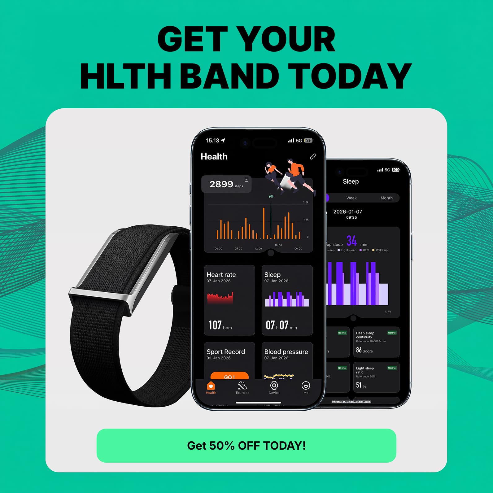 The HLTH Band uses advanced optical sensors to track sleep, heart rate, HRV, resting heart rate, and recovery trends. It’s built for consistent daily tracking you can trust. While not a medical device, it provides reliable insights for real-world health monitoring.